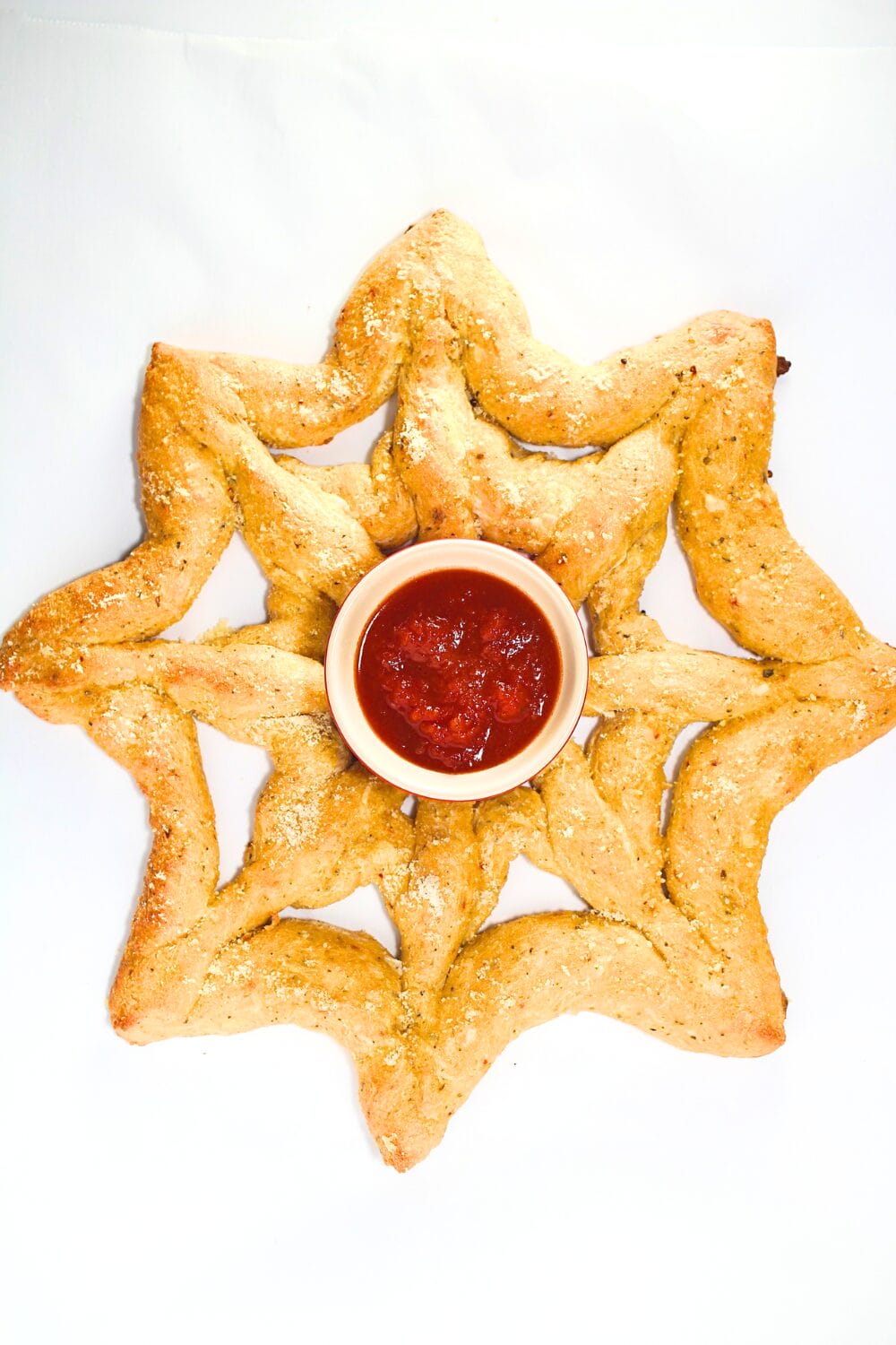 - Cheesy Breadsticks: After rolling out the dough and placing on a baking sheet, spread the bread with melted butter. Sprinkle ½ cup finely shredded cheese on top (I like to use ¼ cup parmesan cheese and ¼ cup mozzarella cheese). Bake as directed.