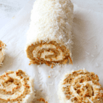 This Easy Keto Carrot Cake Roll Cake combines a light carrot sponge cake, with a deliciously creamy sugar-free Whipped Cream Cheese filling. Top it with either a thin coat of leftover cream cheese frosting sprinkled with coconut flakes or a dusting of sugar-free powdered sweetener. This low-carb and gluten-free roll cake is easy enough for even the newest keto bakers!